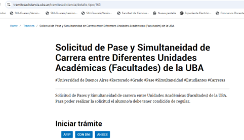 Si sos alumna/o regular de otra unidad académica y querés realizar una solicitud de Pase o Simultaneidad para iniciar la carrera de Lic. En Biotecnología en esta Facultad, debés ingresar a https://tramitesadistancia.uba.ar