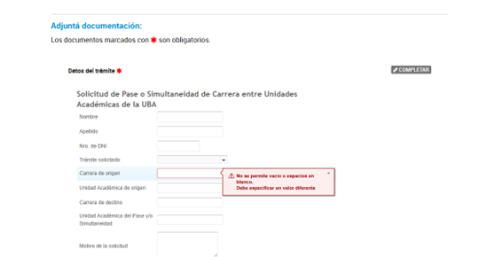 Completar los datos del trámite